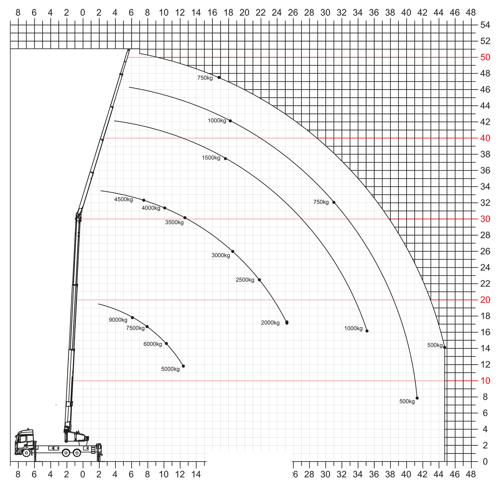 | Flèche (3 000 - 750 kg) | 6.65 x 18.80 m |